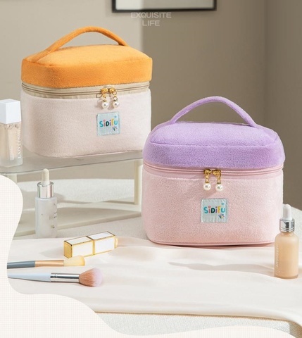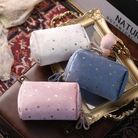 Light Luxury Style Velvet Twinkle Cosmetic Bag Portátil Double Zipper Mobile Phone Lipstick Storage Makeup Bag